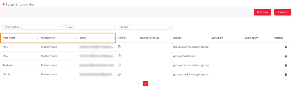 Call up the menu item Users and search for the user who is to be inactivated. Either by first or last name or by the e-mail address with which the user is stored.