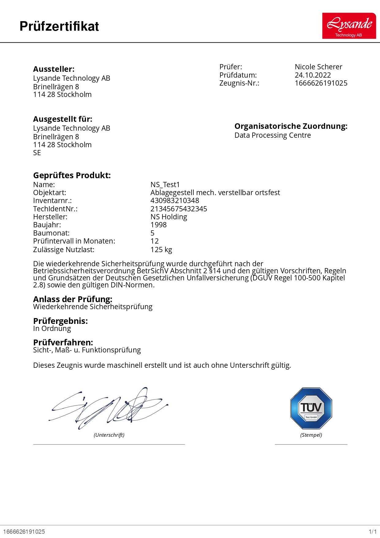 Certificate with logo, stamp and signature